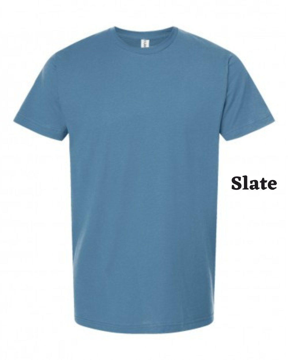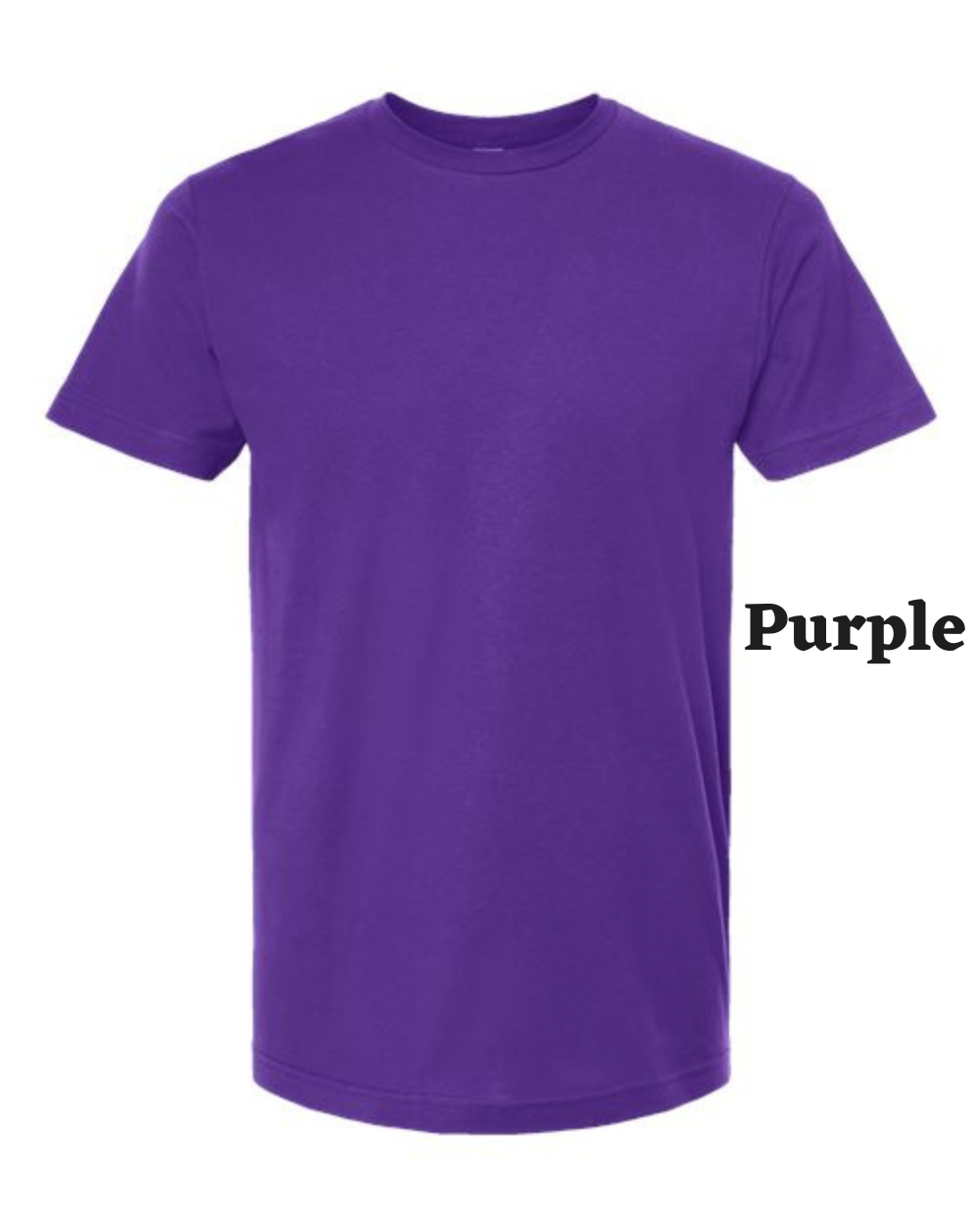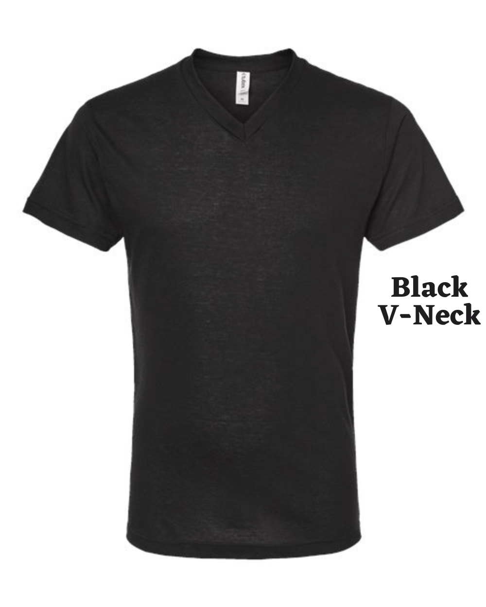 Design is printed in black ink only. Be aware of this when choosing shirt color.