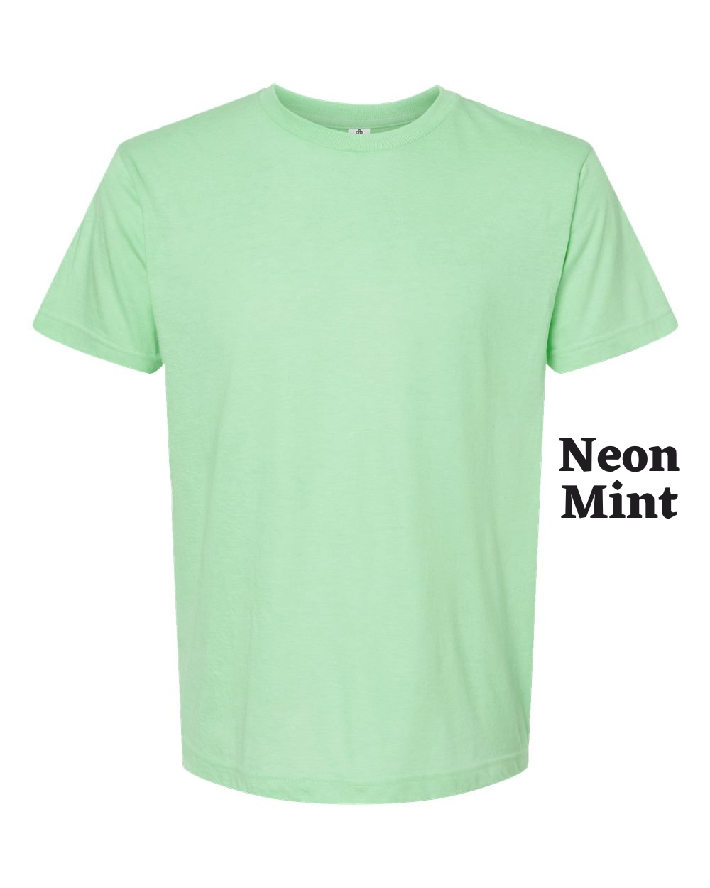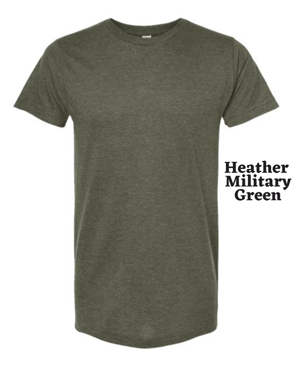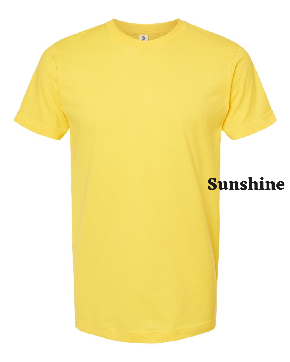 Design is printed in black ink only. Be aware of this when choosing shirt color.