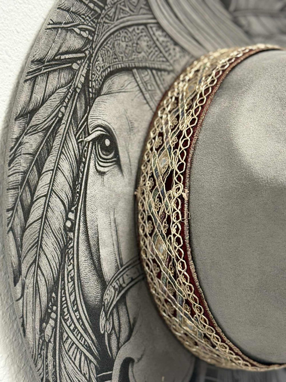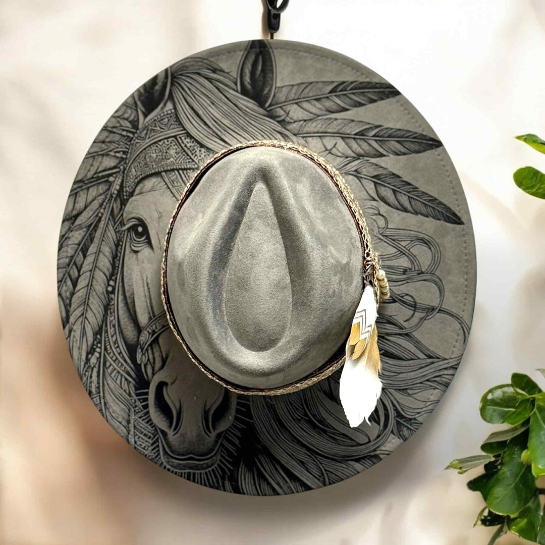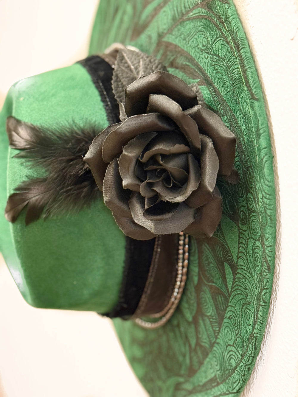 Ostentatious Hand Painted Peacock Wide Brim Vegan Suede Hat