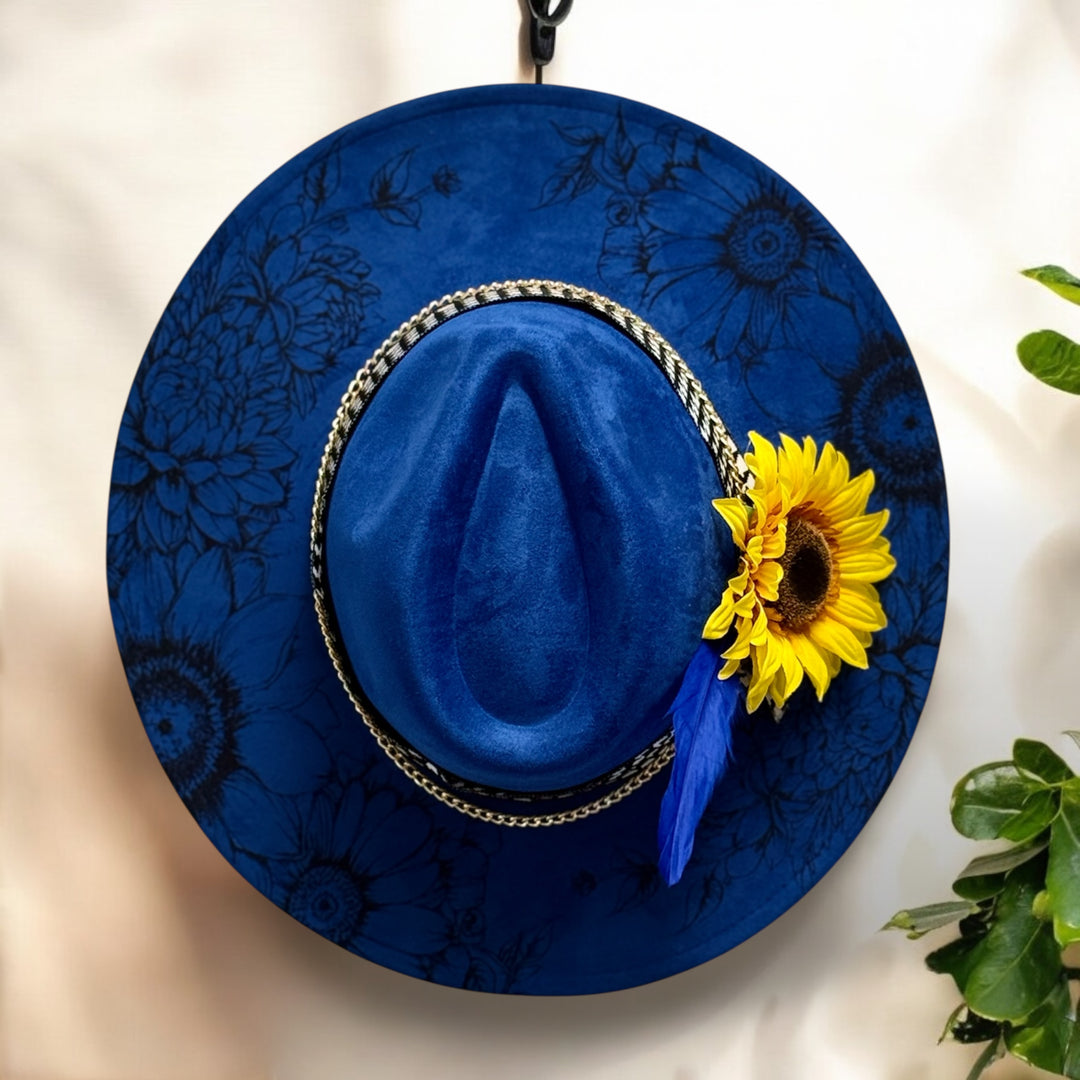 Sapphire Serenade Wide Brim Vegan Suede Hat