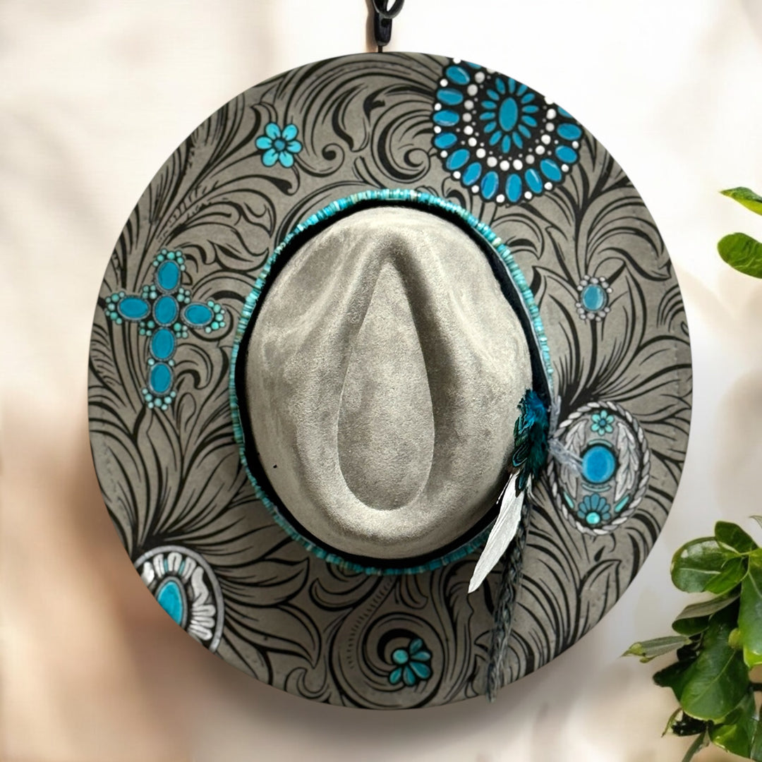 Turquoise Dream Wide Brim Vegan Suede Hat
