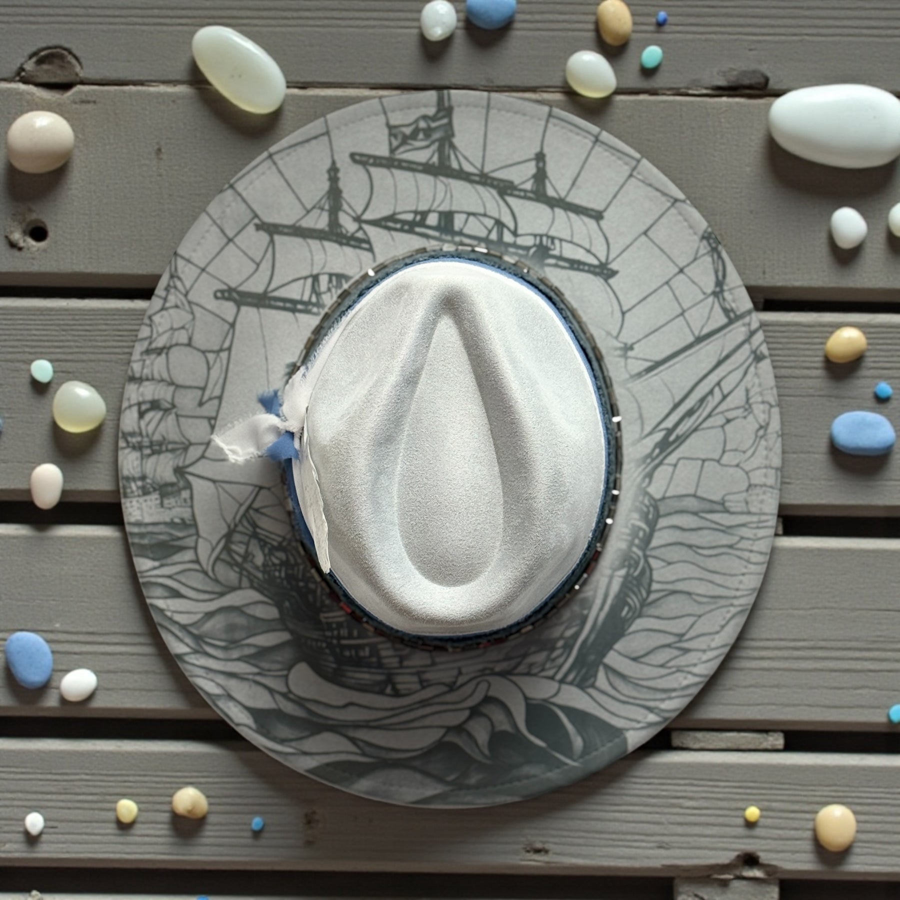 Seafaring Stained Glass Wide Brim Vegan Suede Heart Crown Hat