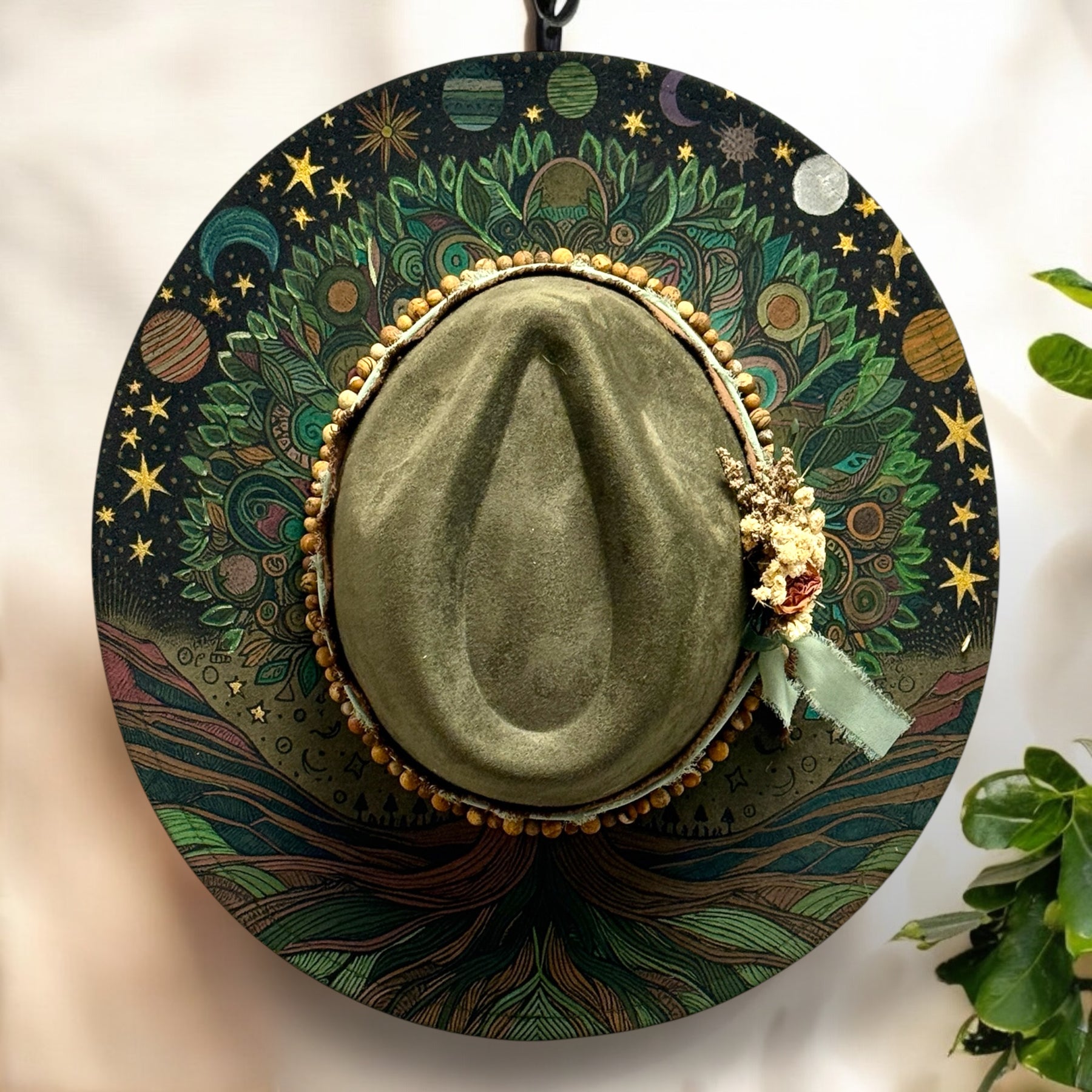Tree of Life Hand Painted Vegan Suede Wide Brim Hat